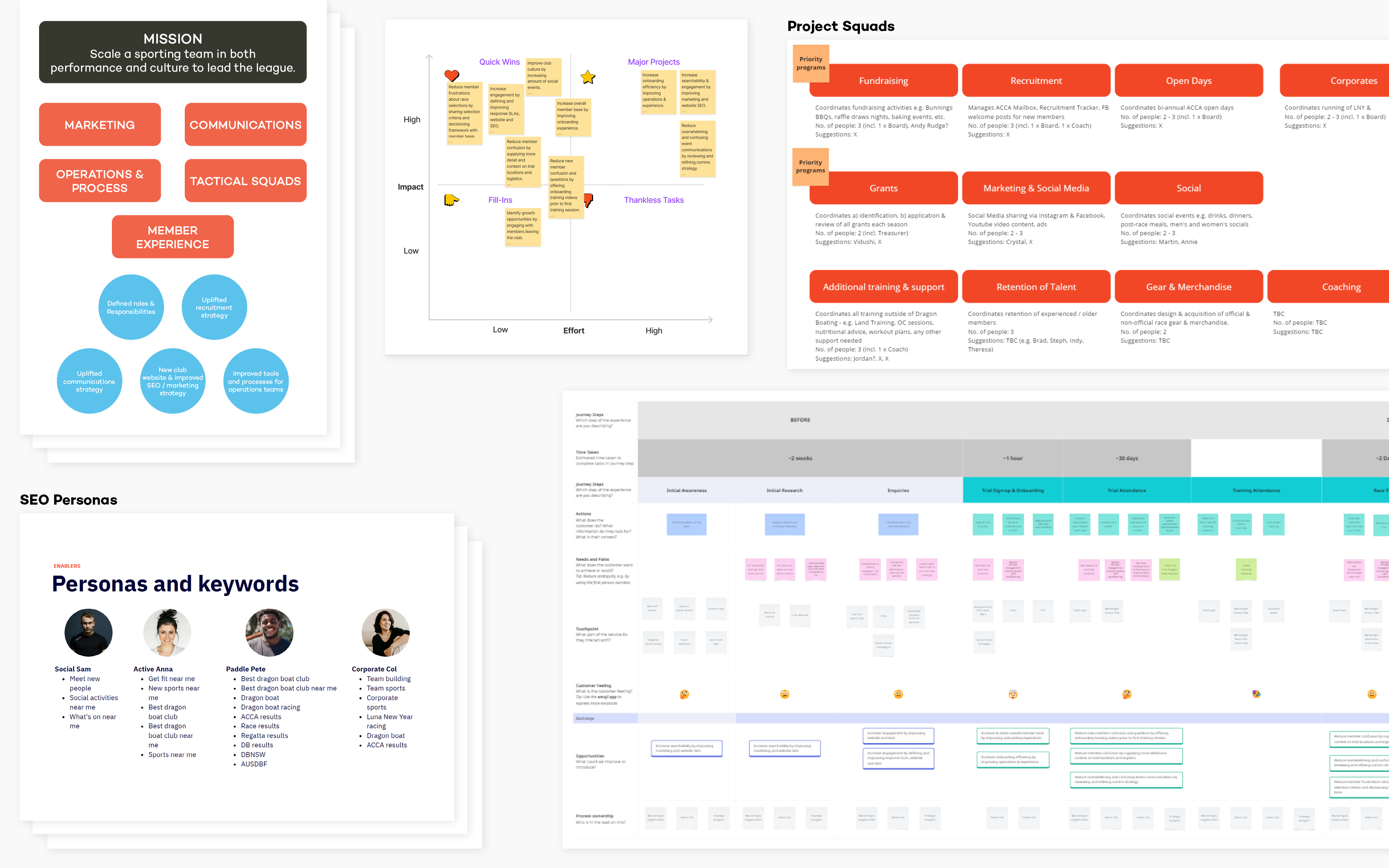 The final delivery included a mix of quick, tactical wins alongside larger, more strategic plays — all designed to address critical pain points across the club’s operations, communications, and culture. Whether rolling out new communications templates or rebuilding the club’s digital presence, each initiative was seen as a necessary enabler — laying the groundwork for sustainable growth, smoother collaboration, and a stronger member experience.